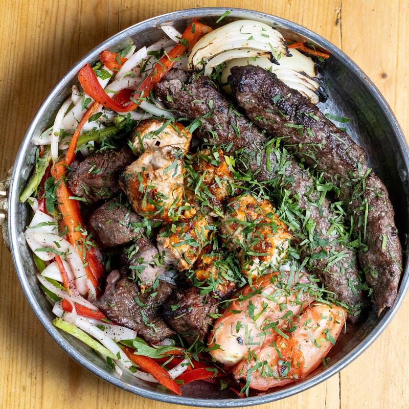 Grilled beef kofta with parsley, onion, and Levantine spices. Served with bulgur.