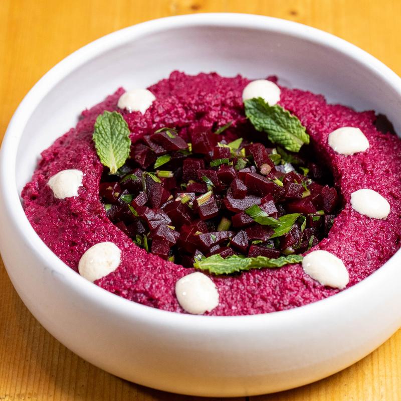 Roasted beet, walnuts, tahini, and olive oil.