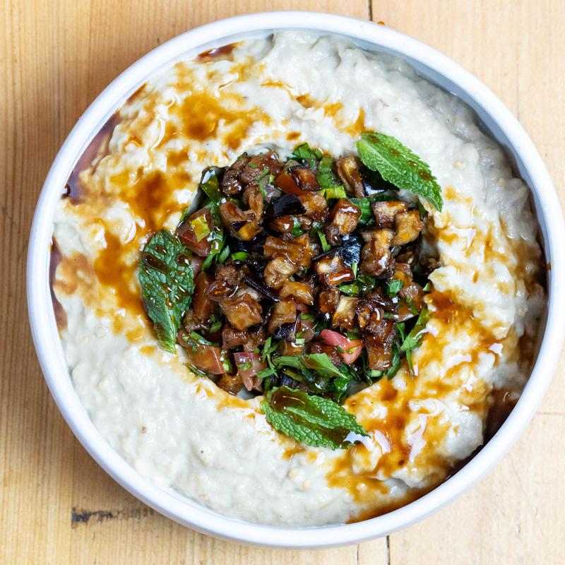 Roasted eggplant, tahini, lemon, olive oil.