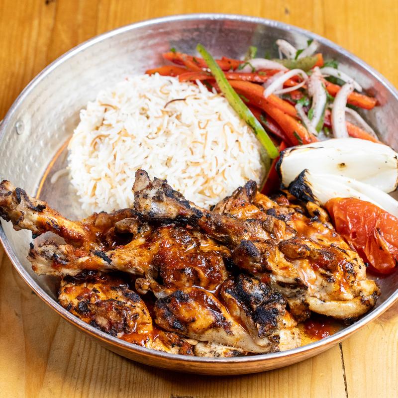Slow-marinated whole chicken, grilled over open flame.